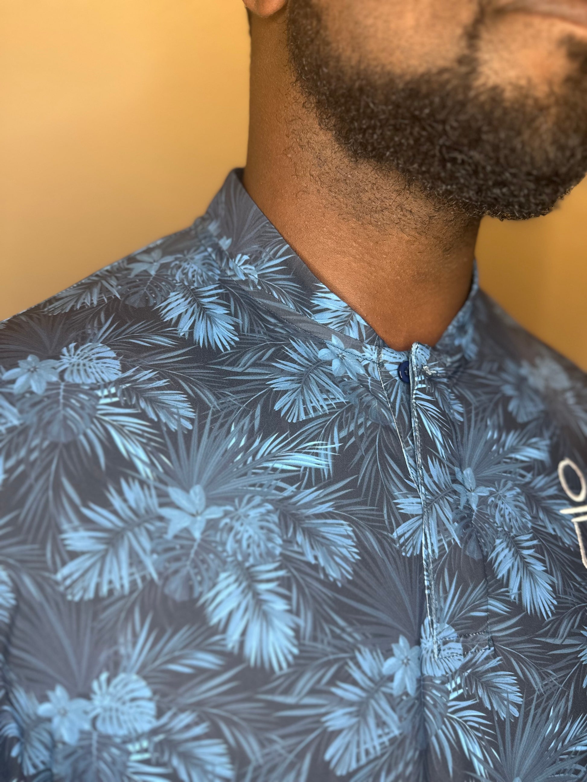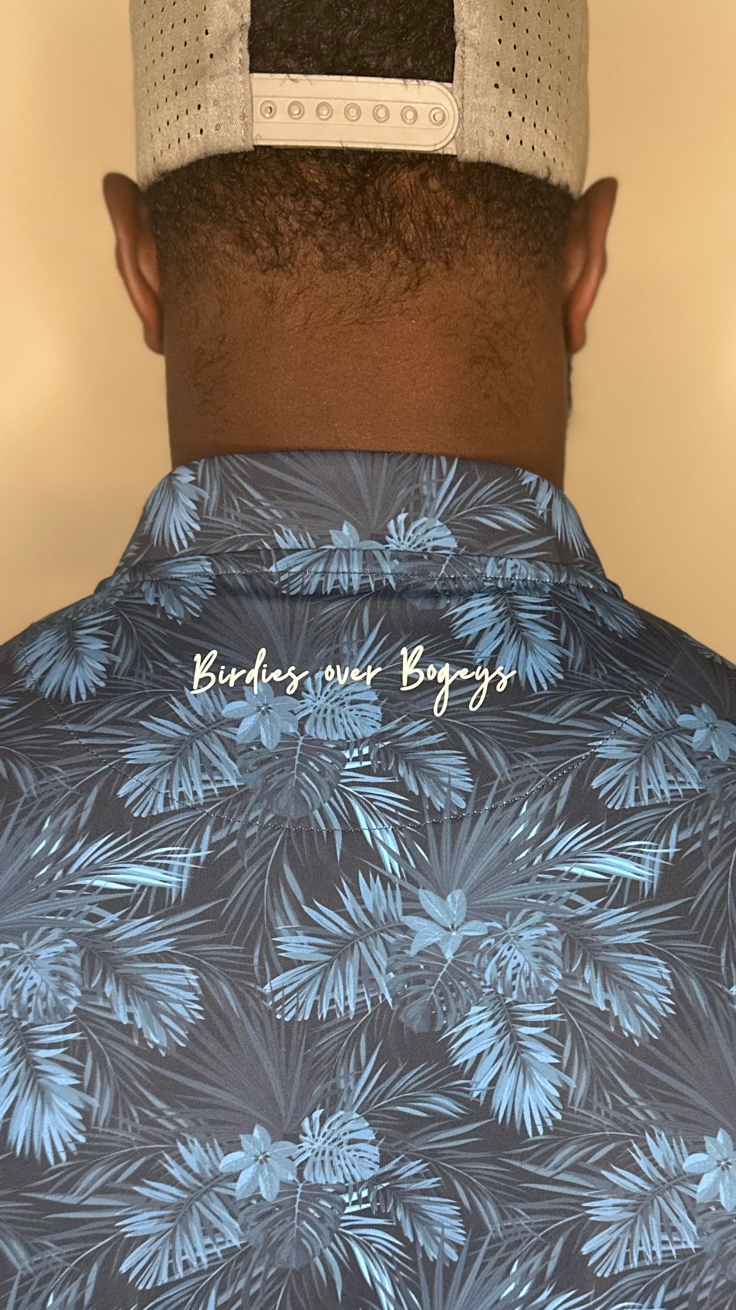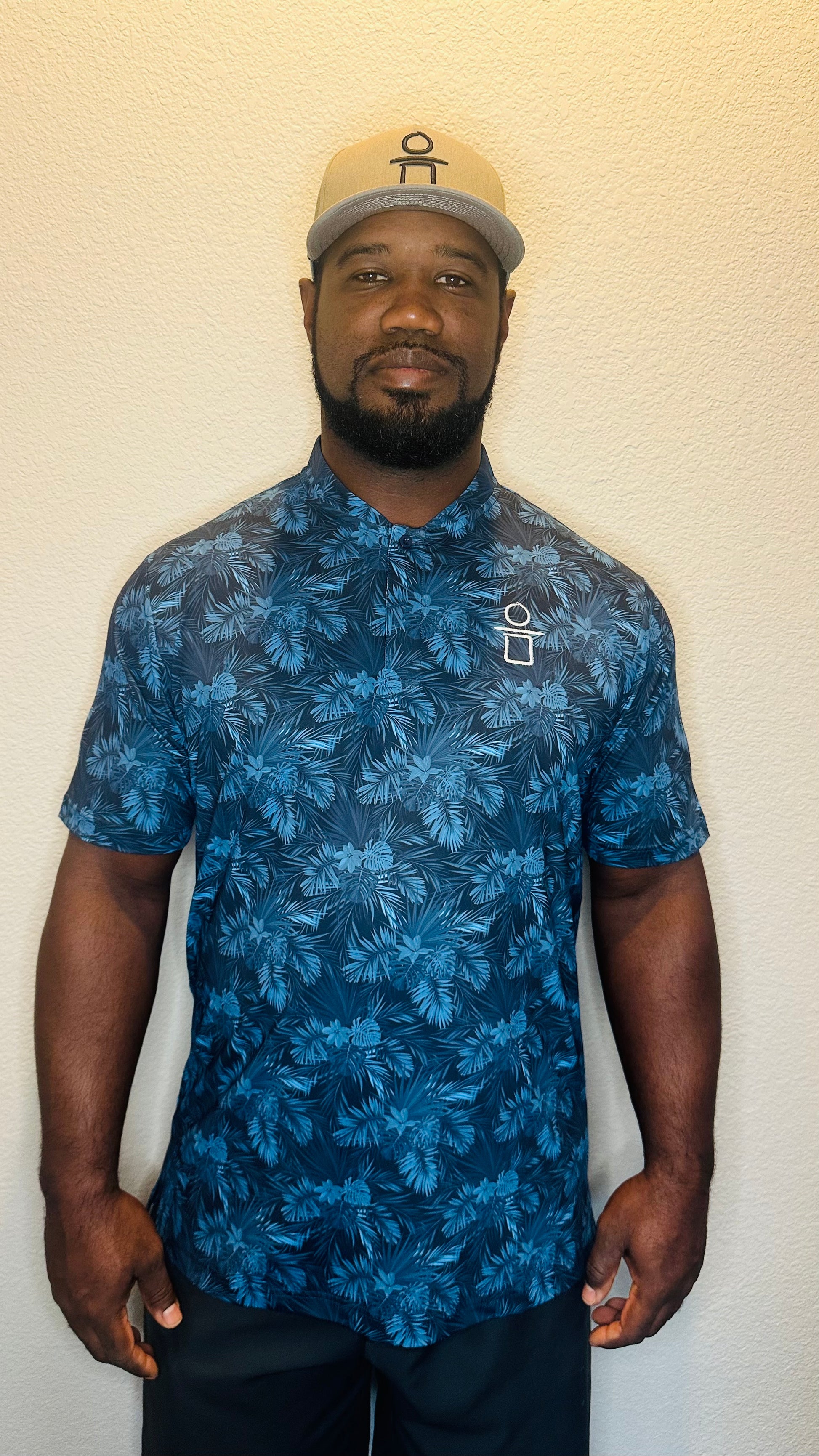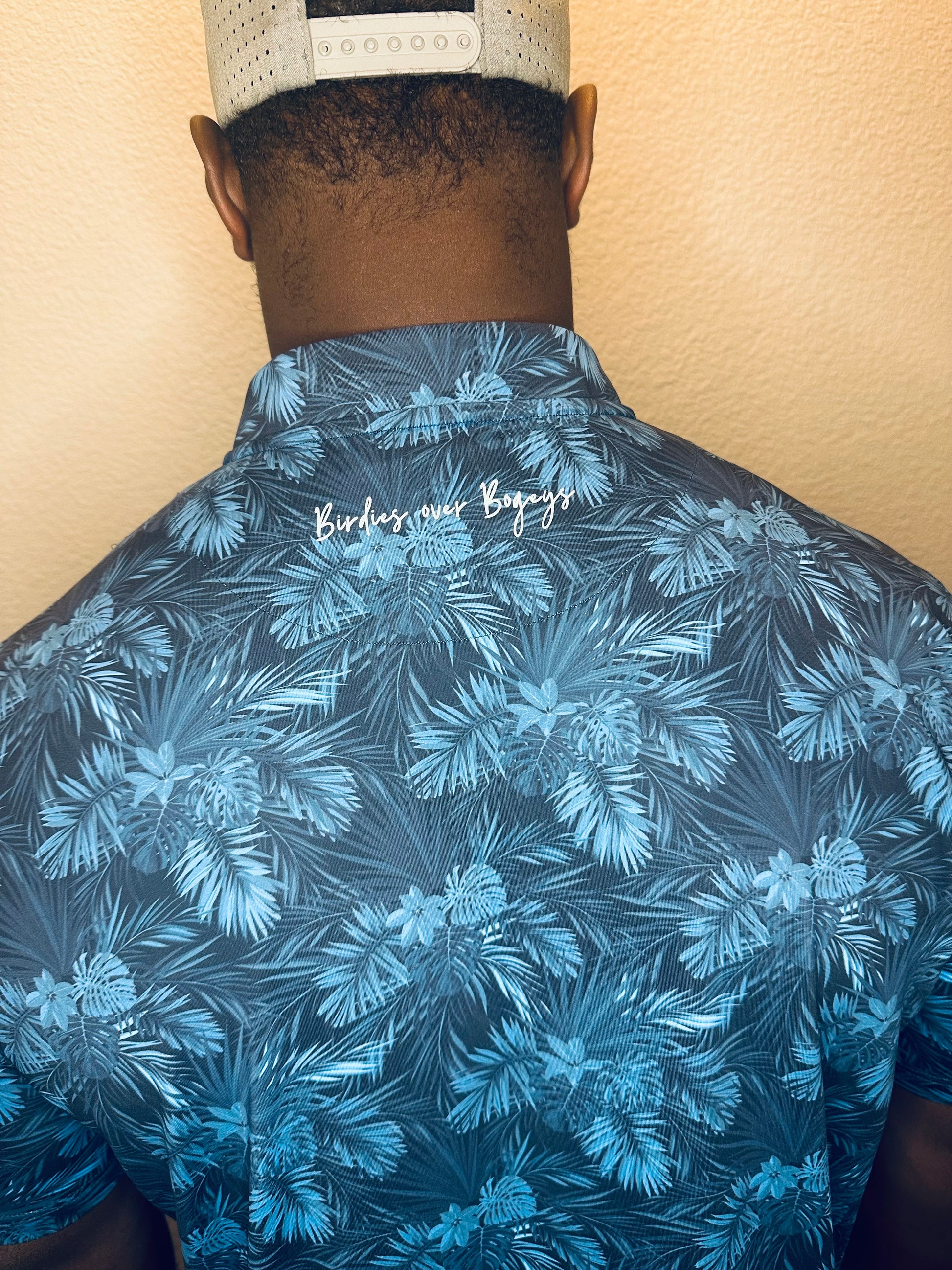 Play with style and confidence in the Blue Oasis Golf Polo Shirt — where sport meets art.