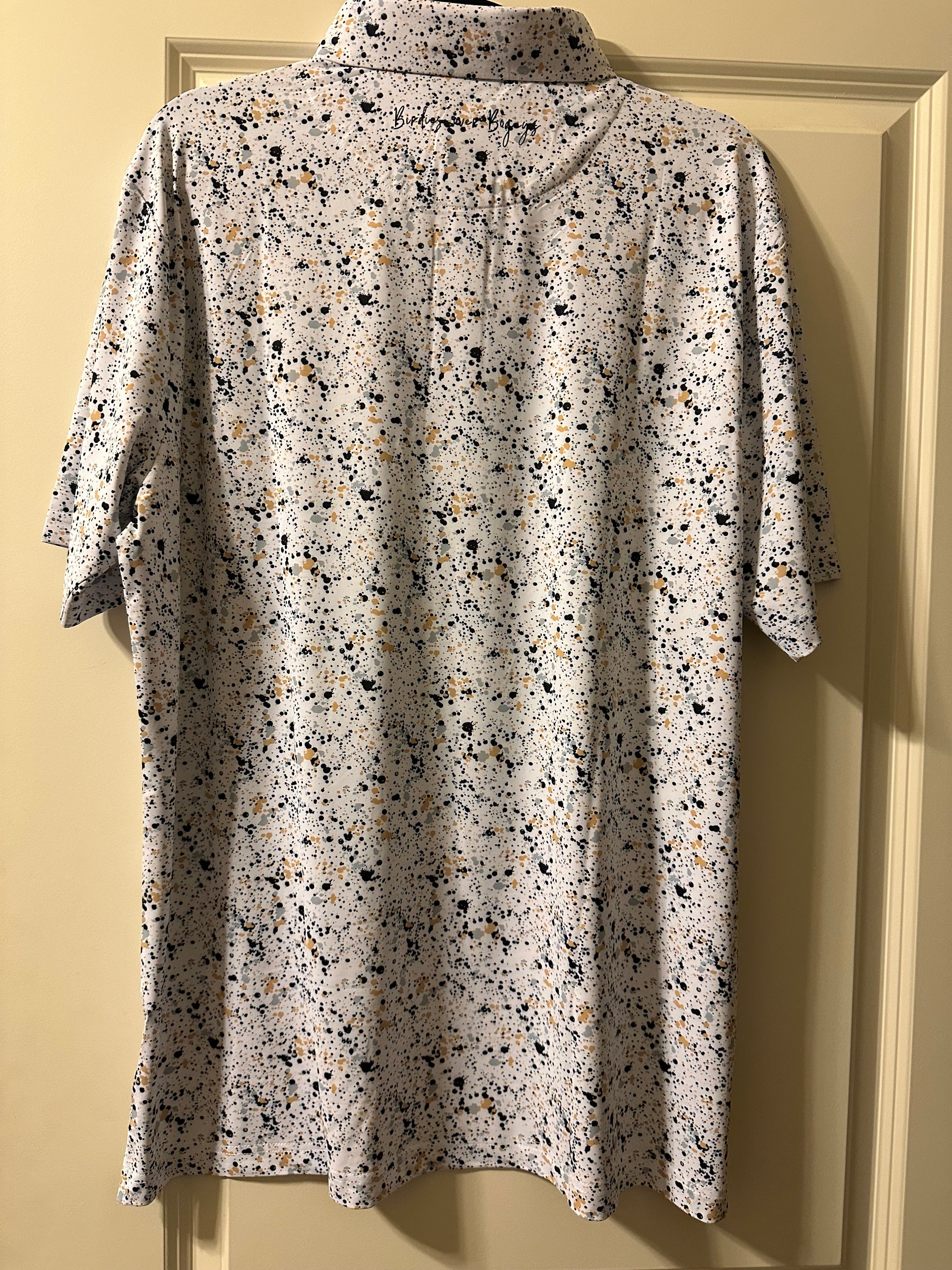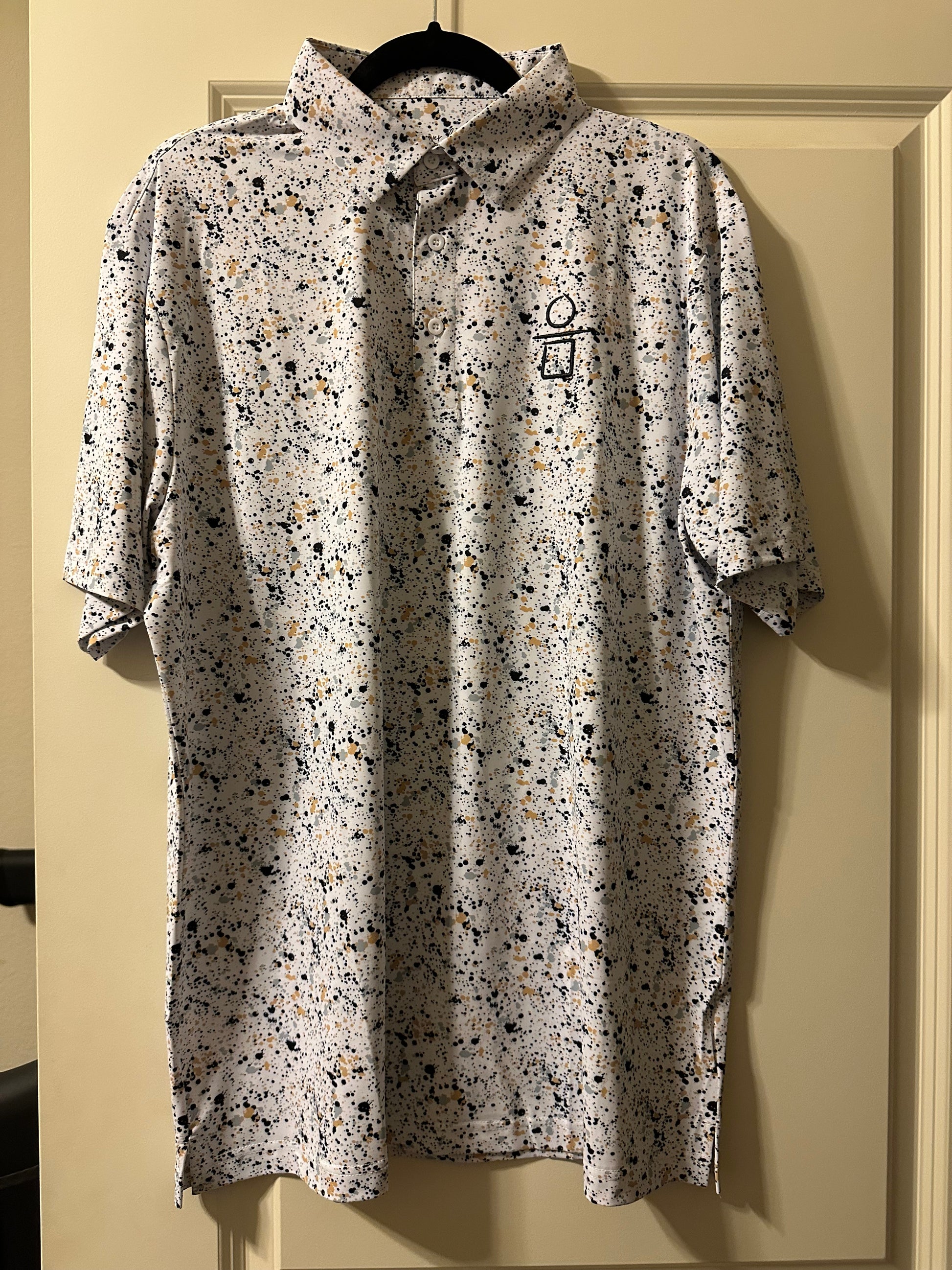 Make a bold statement on the course with our Gold Paint Splatter Golf Polo. Crafted from premium moisture-wicking fabric, this shirt combines performance and style, keeping you cool and dry as you play. The unique paint splatter design adds an artistic flair to your golfing attire, making it the perfect blend of athleticism and creativity. Whether you're sinking putts or teeing off, this polo ensures you stand out with every swing. Designed for both comfort and movement, it's an essential piece for any golfer who values both function and fashion.