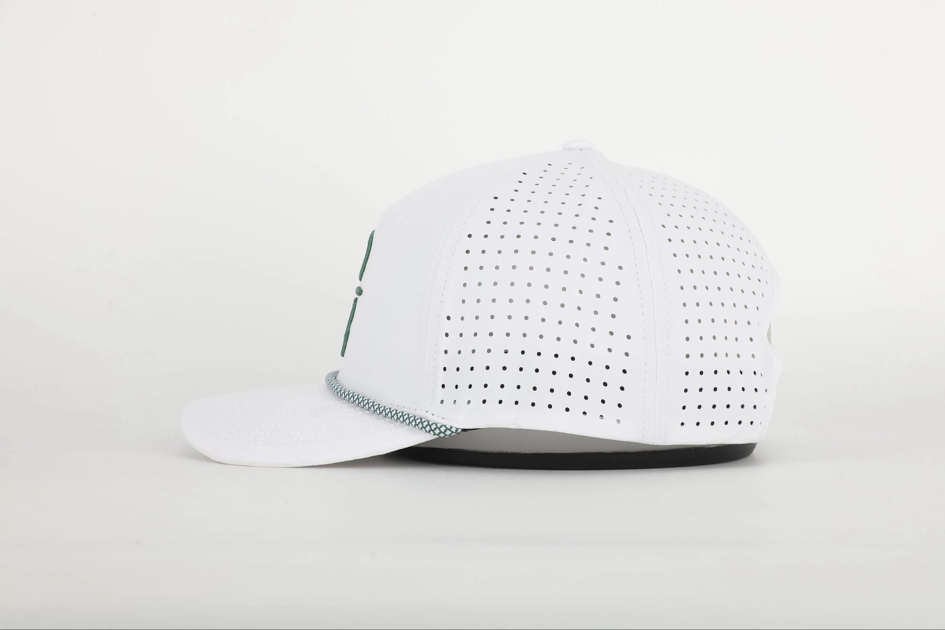 It is the ultimate everyday golf hat. Combining a classic rope hat style with a contemporary twist on the traditional trucker hat. The SnapBack Waterproof hat ensures you stay cool and dry on the course. Crafted from lightweight fabric, it includes a snapback closure and sweat-wicking technology to manage moisture and enhance your comfort throughout your game.