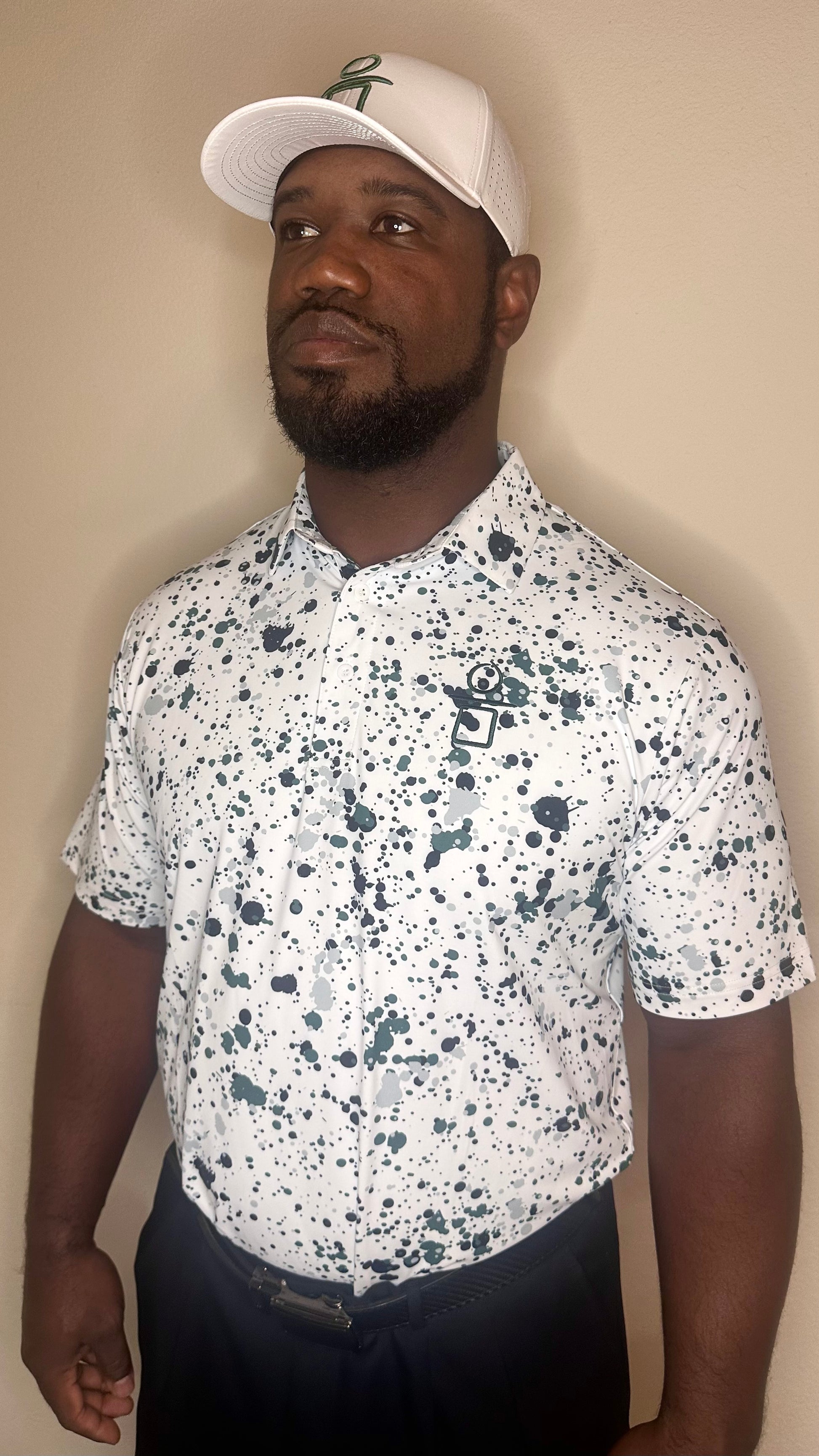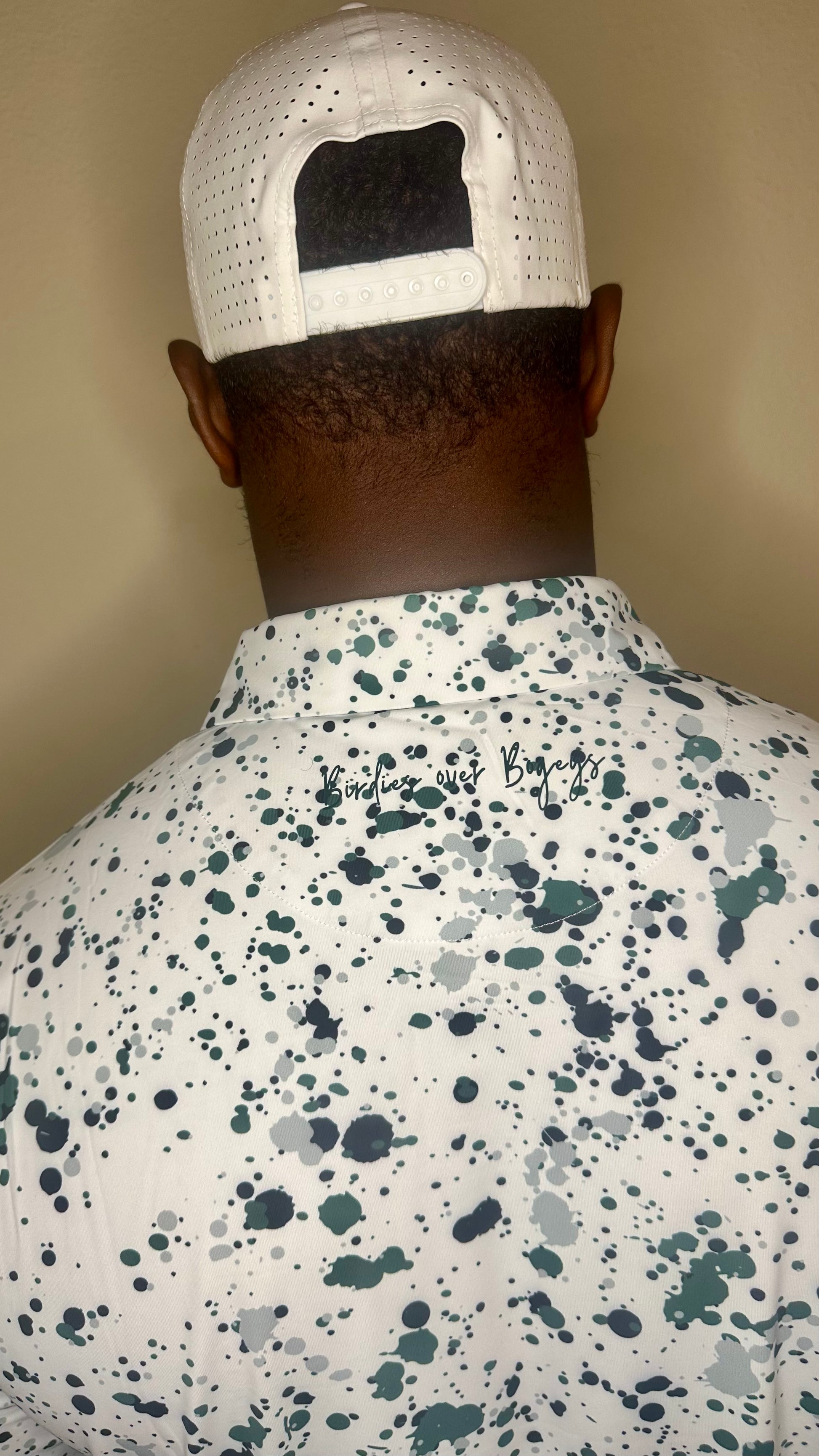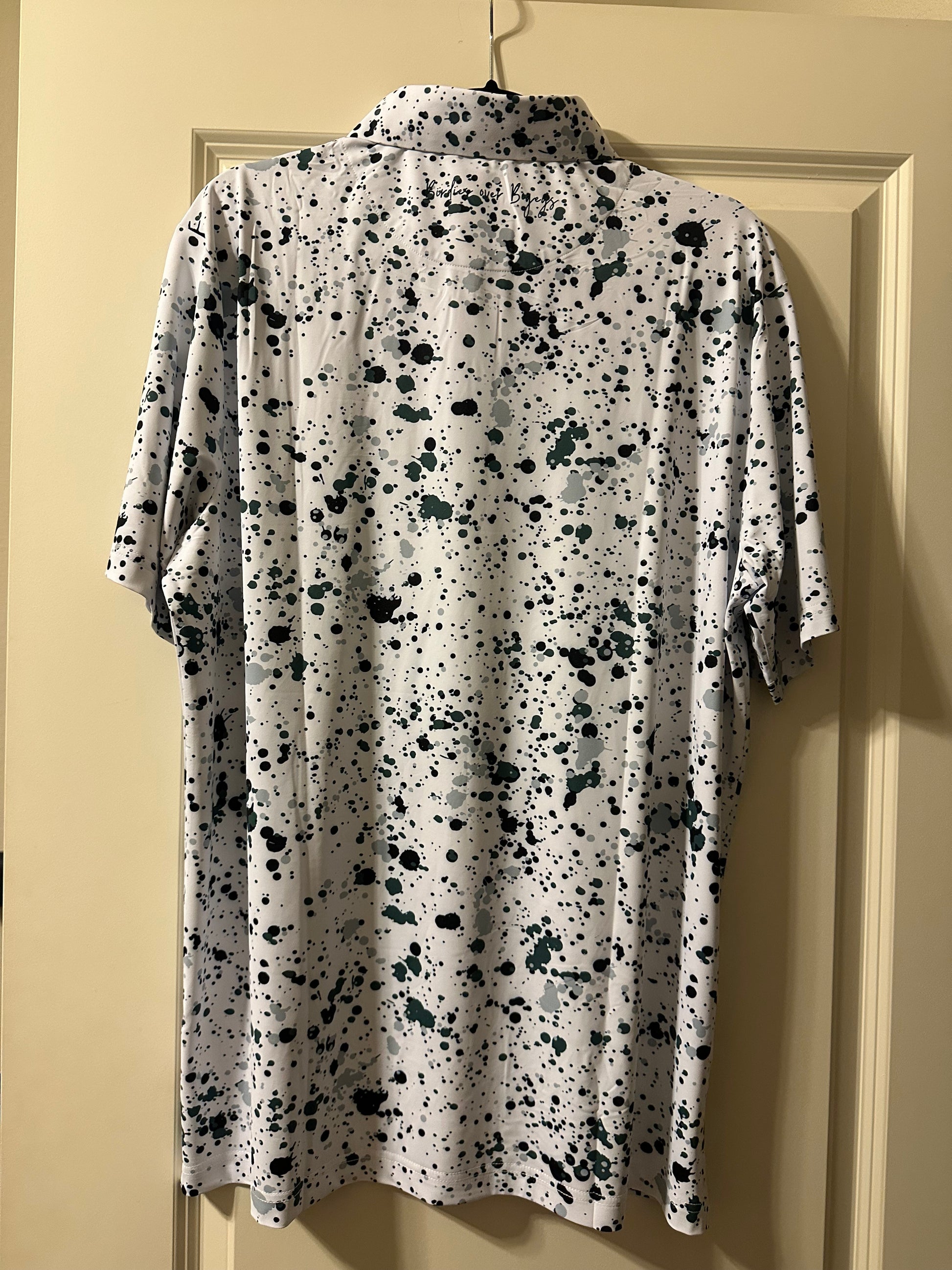 Make a bold statement on the course with our Green Paint Splatter Golf Polo. Crafted from premium moisture-wicking fabric, this shirt combines performance and style, keeping you cool and dry as you play. The unique paint splatter design adds an artistic flair to your golfing attire, making it the perfect blend of athleticism and creativity. Whether you're sinking putts or teeing off, this polo ensures you stand out with every swing. Designed for both comfort and movement, it's an essential piece for any golfer who values both function and fashion.